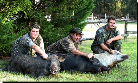| Mike Kaes gave the guys a treat when he brought up son, Jake, and son-in-law, Jason, for trophy and meat hogs. It was a first hunt for Jason and Jake, and they did a really fine job. |